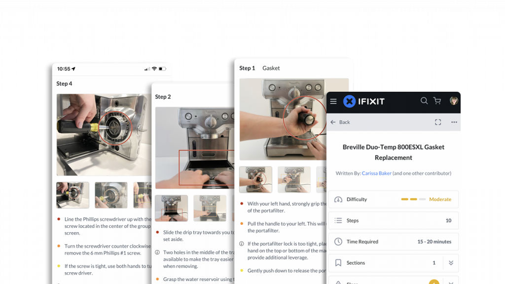 The mission of iFixit is empowering users and product owners to repair their items, rather than throw them away. For this project, I created documentation on how to replace a gasket on a Breville Duo-Temp 800ESXL using a non-functioning espresso machine I acquired from a neighbor.